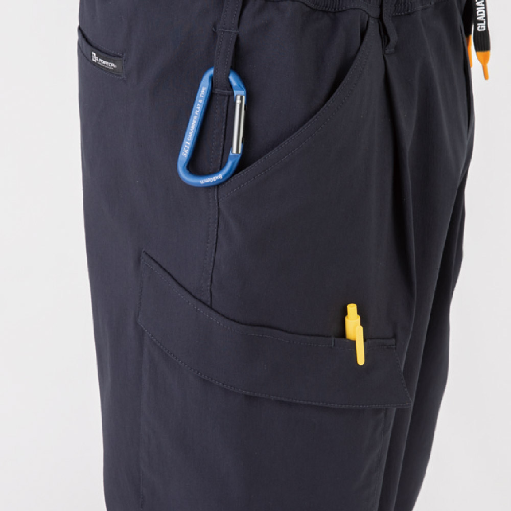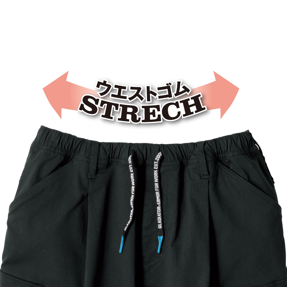 ジョッパーズ×乗馬パンツを掛け合わせた独自シルエット「ジョッバーズ®」「楽さの極み」を実感できる驚異のヨコ伸び55%以上の超ストレッチ。ウエストは紐で留める他にベルトループもあり、幅広いシーンに対応。ショート丈専用パターンでカジュアルすぎない絶妙なシルエットに。