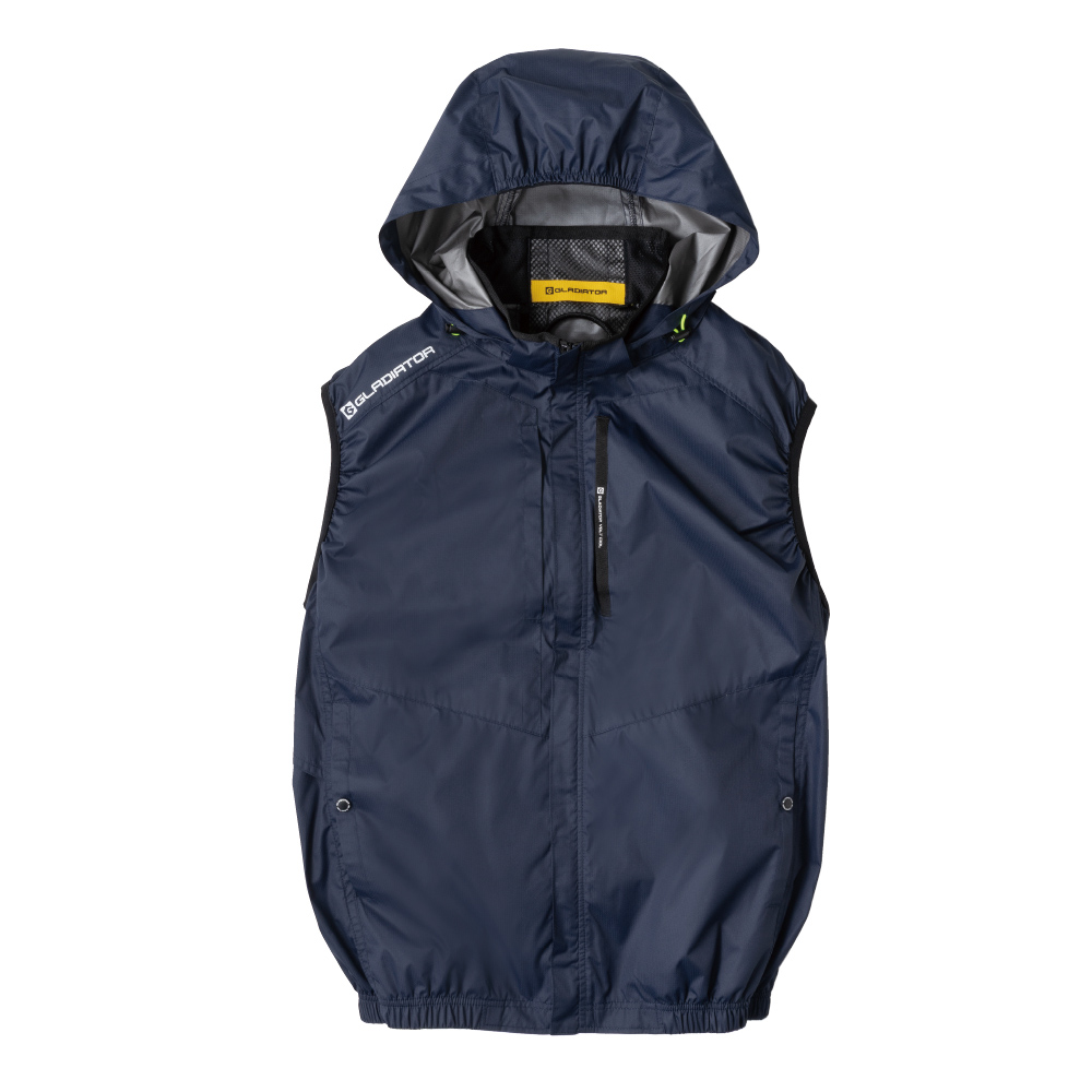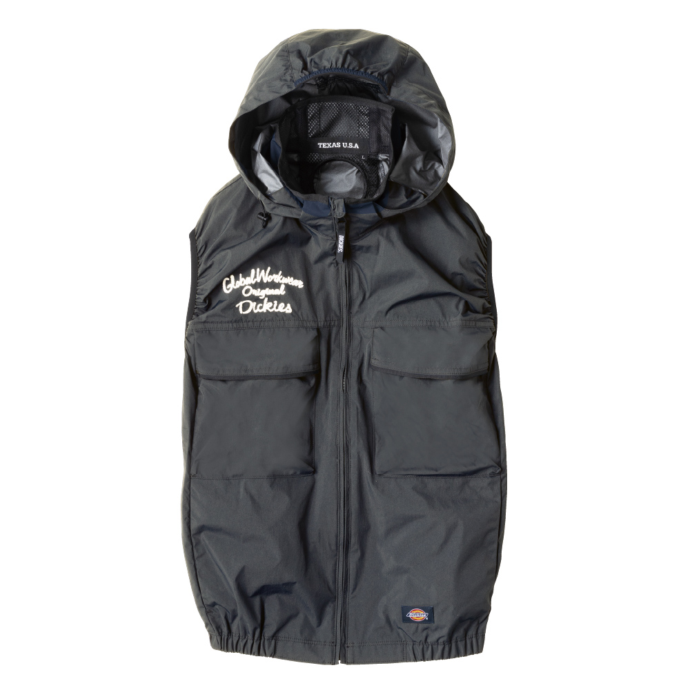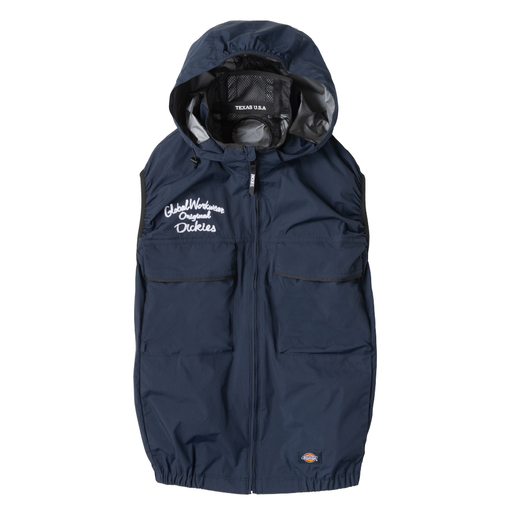 日傘遮熱® サイドファン ペルチェネックホルダー 衿ワイヤー入り ヘルメット対応フード(着脱可) オリジナルチェーン刺繍