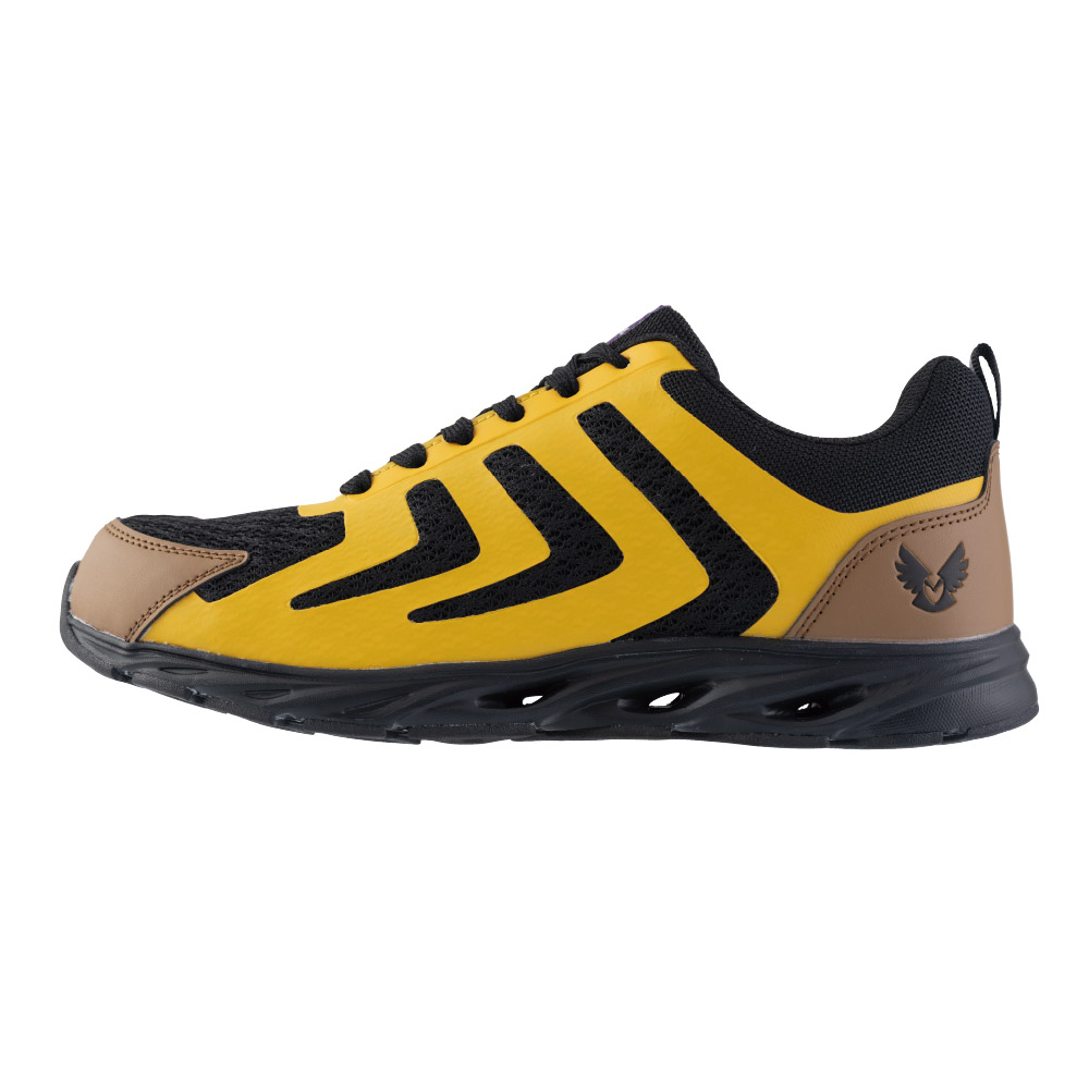 「MINERVA WORKS®」シリーズ初の通気性ソールが採用された新モデル。ソールの通気孔からシューズ内部へ風が駆け抜け、足が蒸れにくい快適な履き心地。アッパーのメッシュで通気性と軽量を両立し、軽さと爽快さを極めた涼感ワークシューズ。