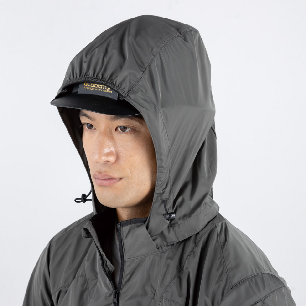 ヘルメットの上から被れる大型フード