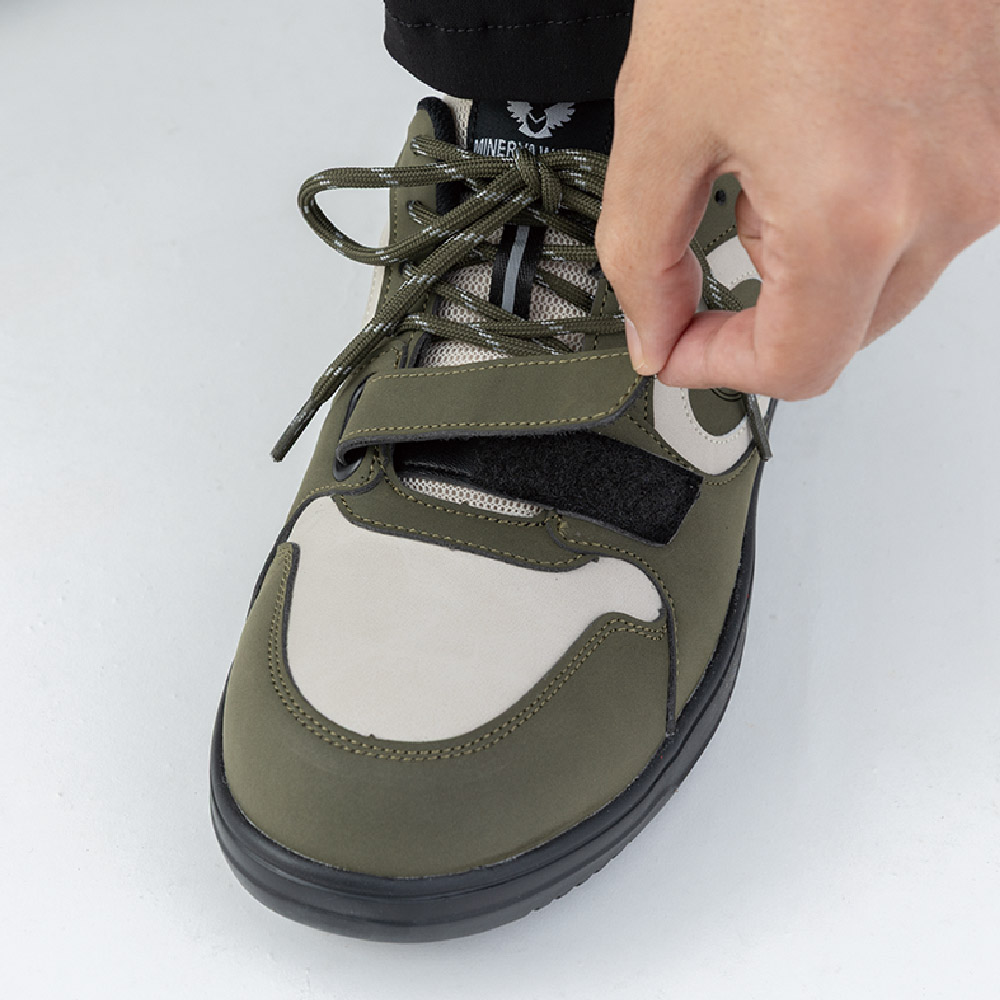 MW-3301/3302続くJSAA A種 プロスニーカー®モデル。配色デザインのアッパーは粉じんの侵入を抑えつつ、過酷な使用にも耐える合成皮革を採用。甲部は紐とベルトを組み合わせたダブルクロージャ―仕様で高いフィット性を実現。