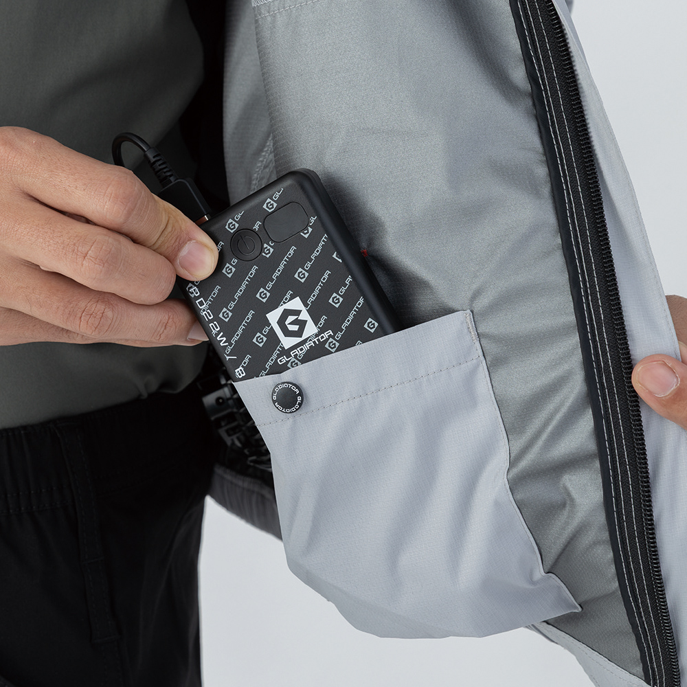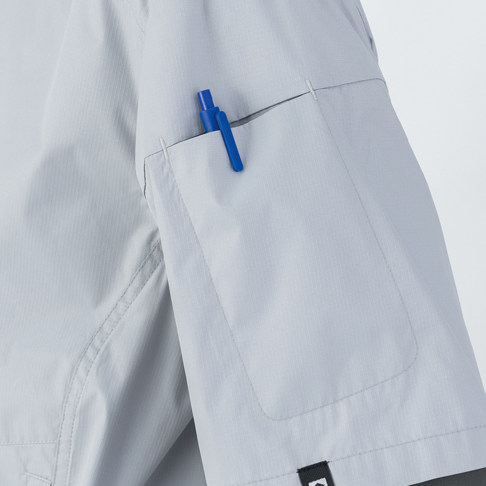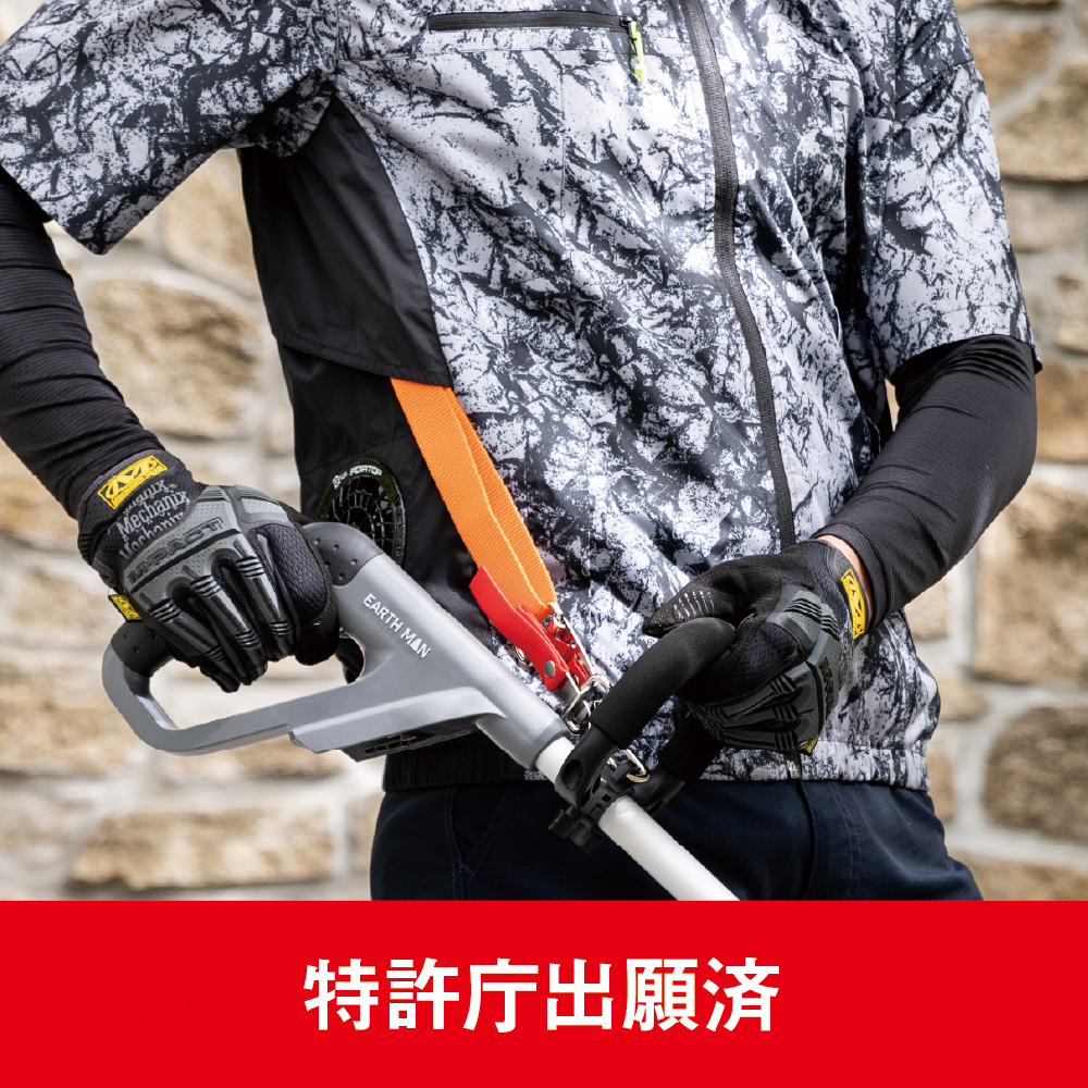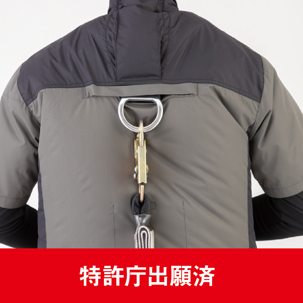 裏アルミコーティングの「日傘遮熱®」でマイナス11度を実現。刈払機肩掛けベルトの取り出し口を装備し、シート着座時でもファンが邪魔にならないサイドファン仕様。フルハーネス対応でハードな場面で頼れる空調ウェア。