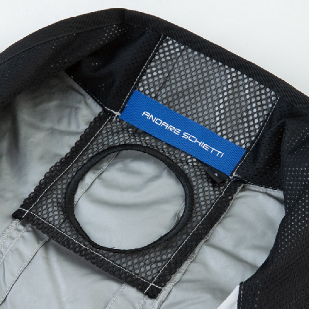 首元にペルチェクーラーも装着可能なハイブリッド空調ウェア。