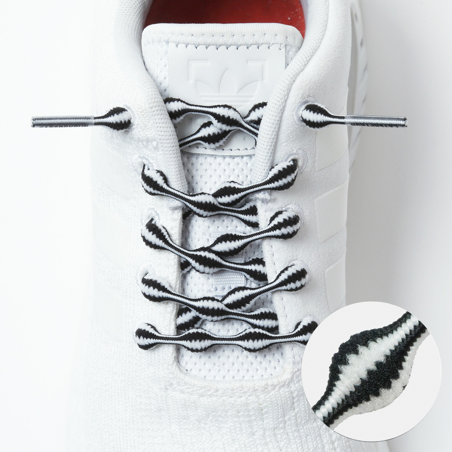 結ばない靴紐。結ぶまどろっこしさをこれで解消。伸縮性のある紐のため、脱ぎ履きする際も調整不要。カラー展開も豊富なため、足元のアクセントとしても○。