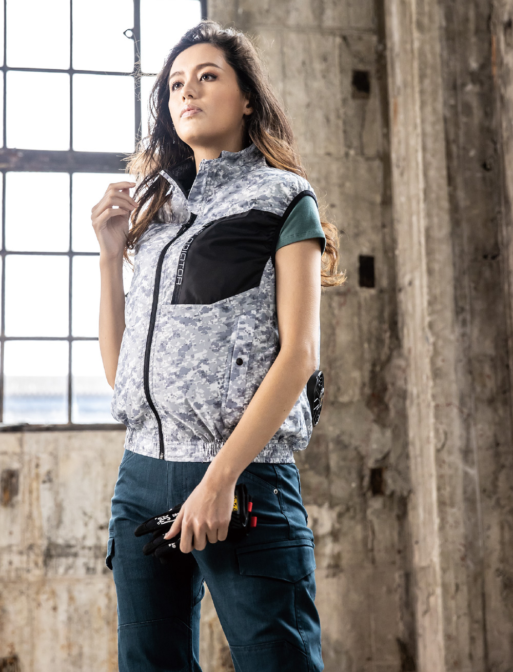 そんな過酷な現場で日々働き続けるワーカーに、ウェアと電力を掛け合わせ、「より快適で、よりカッコイイワークウェア」を提案。VOLT COOL®(ボルトクール)はファンの力で衣服内を冷やし、温度調節が可能です。
